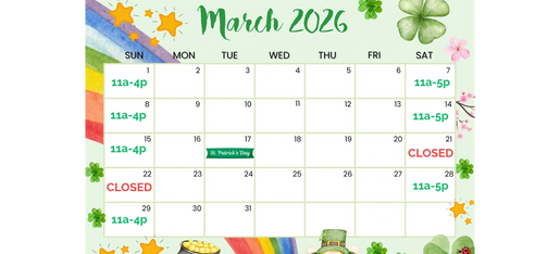 Open Saturdays 11am-5pm & Sundays 11am-4pm or Until Sold Out!